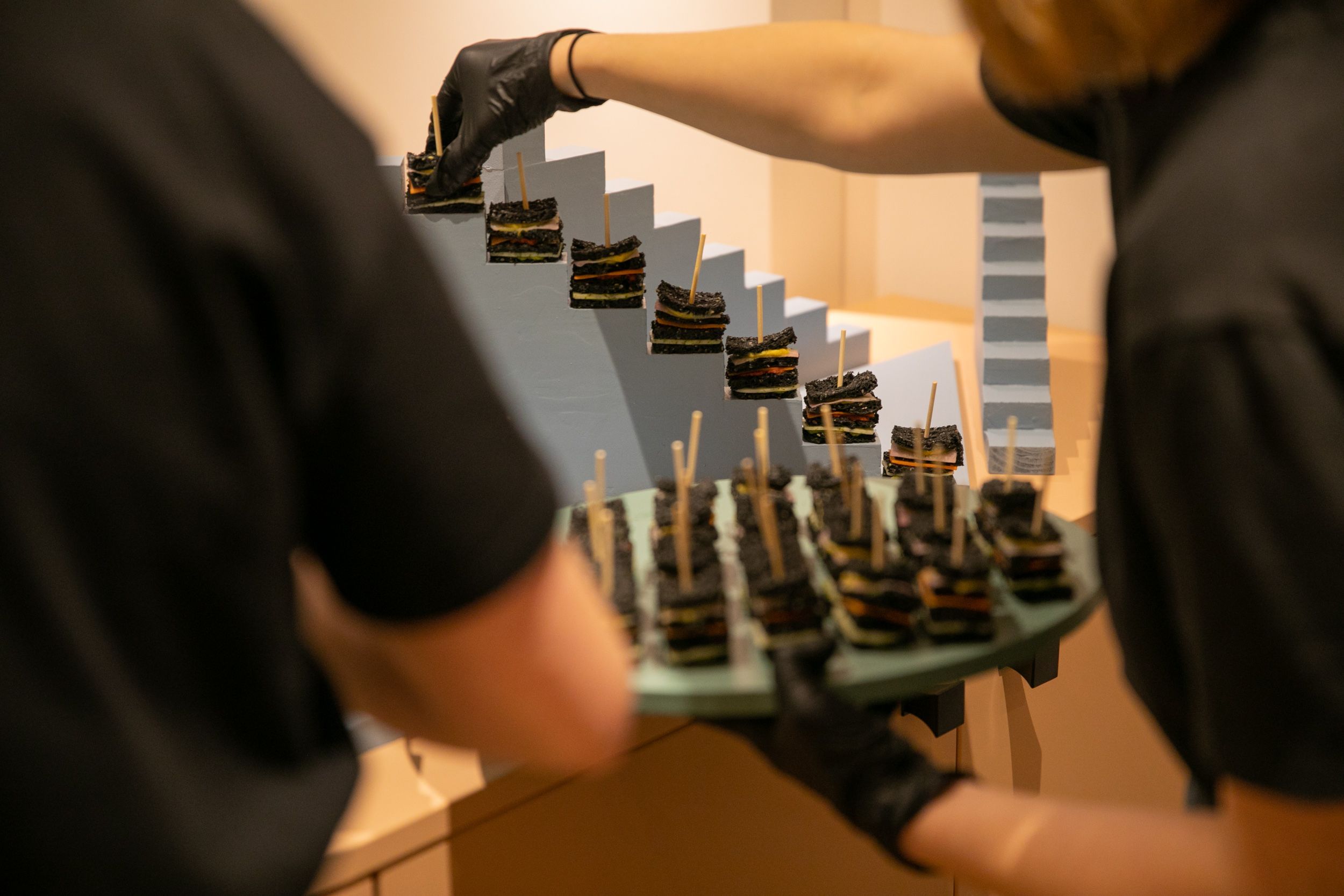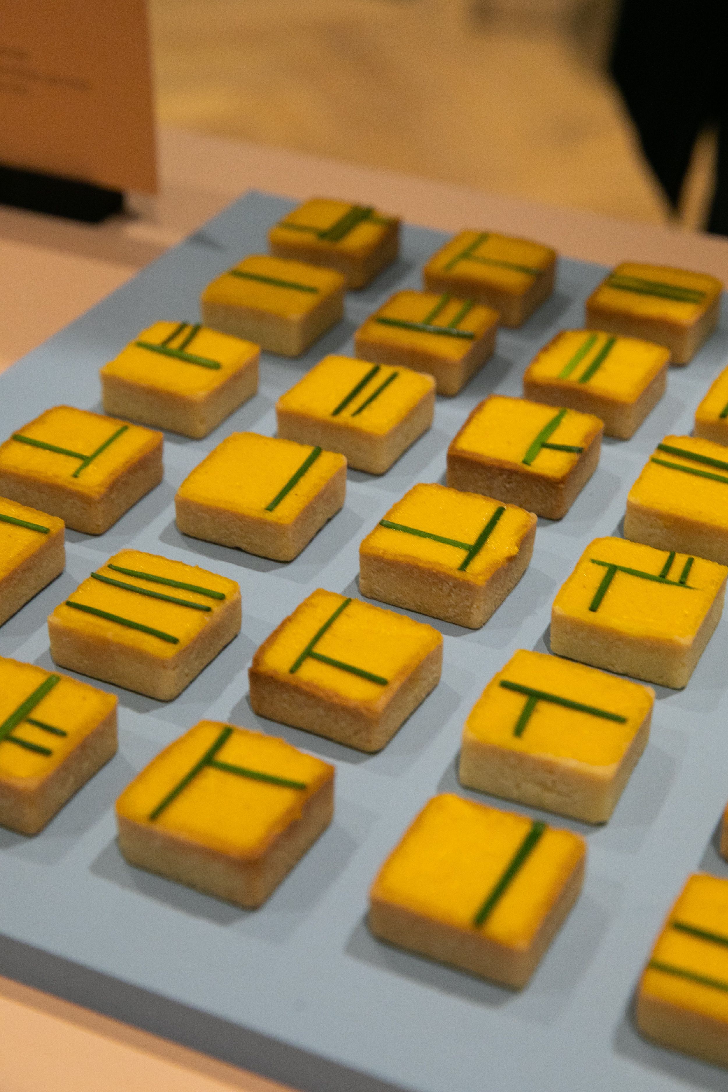 Création et réalisation des bouchées inspirées de l’architecture et de la collection Les Couleurs® Le Corbusier®.